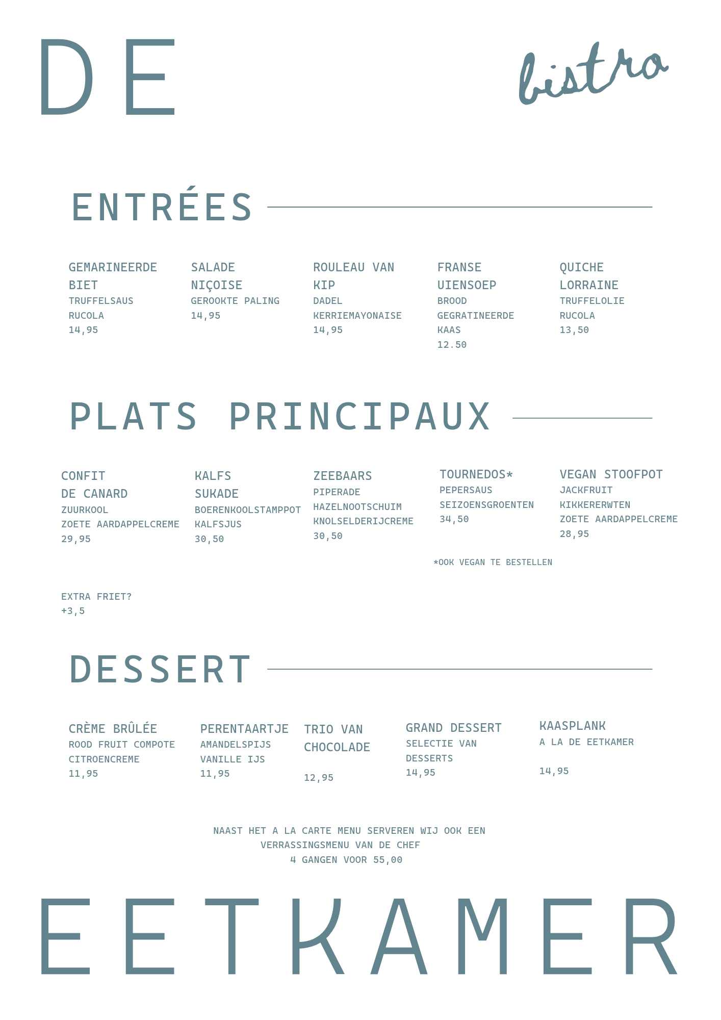 Bekijk hier het menu van Franse Bistro de Eetkamer in Loppersum.